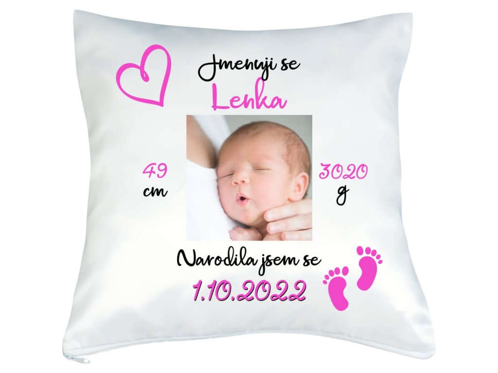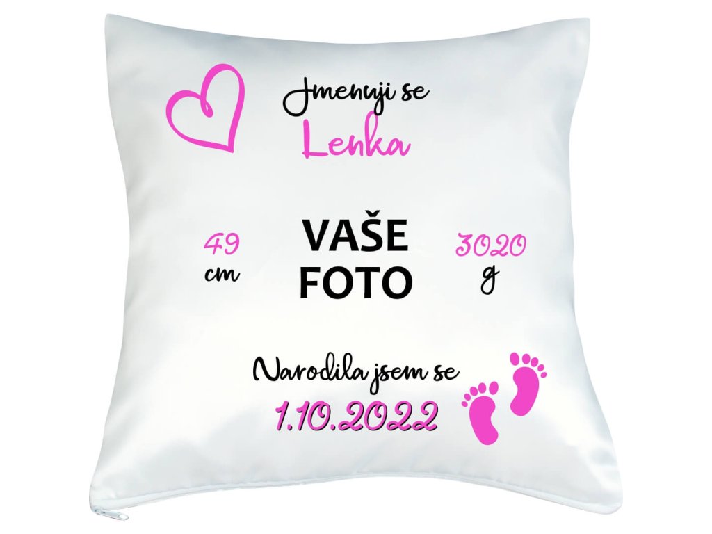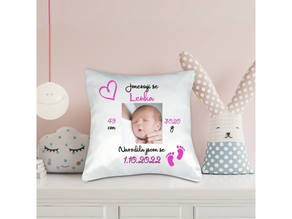 Polštář s fotkou rámeček Narodila jsem se 40x40 cm FOTOpošťák